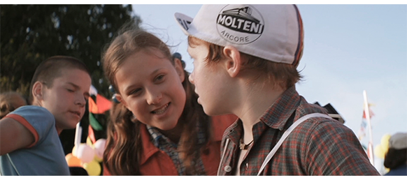 モルテニのTシャツを着たフレディが、マリーと一緒に路上のパーティに出て行く(1枚目の写真)。それを見た父は、フレディをイスに上がらせ、「フレディ、言いたいことがある。私は、お前がレースに勝ったことに、まだおめでとうと言ってなかった。そうすべきだった。だから、おめでとう」と言うと、優勝カップを渡し、「よくやった」と褒める。一斉に拍手が起きる。父は、今度は、パーティ参加者に向かって、「それだけではありません。フレディはとても才能があるので、何と、エディ・メルクスの少年チームへの入団テストに招待されました」と自慢する(2枚目の写真)。さらに拍手が起きる。母は 「この子は、それをしないことに決めました」と勝手な発言をするが、父は 「彼は、自分で決められる年になっています」と、妻の妨害を止め、それを聞いたフレディは、「パパ、僕 やりたい」と言い、母に対しては、「もう昔の僕じゃない」(3枚目の写真)「僕、試してみたいんだ」と言う。父は 「誇りに思うぞ」を讃える。