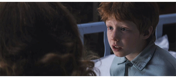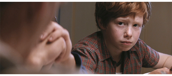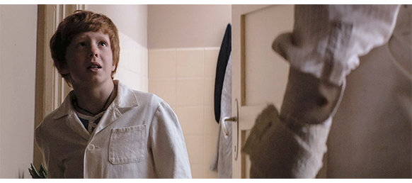 4人の委員と1人の医師が並んだ最終審査会に出席したフレディと父に対し、委員長は 「君の持久力は素晴らしい」と褒める(1枚目の写真)。そして、「友だちと よくサイクリングするのかね?」と訊く。「一度も」。「一度も?」。「いつも一人です。僕の部屋で」。「すごく大きな部屋に違いない」。ここで、父が 「自転車は宙に浮いてるんです」と説明する。「宙に?」。フレディは 「自転車を2本のロープで天井から吊って、毎日練習してます」と説明する。委員長は、その練習方法に驚きと感心を交えた表情で、父に向かって、「私たちの練習は、寄宿学校で行ってもらいます。クリスマスとイースターの2週間以外は、ずっと寮生活です」と説明し、父は 「彼は、自分の部屋に一人でいることに慣れてますから」と言う。委員長は、これでフレディの合格は既定事実とばかりに、「何か他に我々が知っておくべきことはありますか? 練習に何か問題となるようなことはありますか?」と訊き、父は 「ありません」と答える。しかし、正直なフレディは 「やっぱりあるのかもしれません」と発言する(2枚目の写真)。「僕の頭とお尻の間には配線が欠けていて、連絡が届かないので、時々、良くないことが起きるんです」。「良くないこと?」。「パンツの中」。「パンツを汚すの?」。フレディが悲しそうに頷く。「大きい方? 小さい方?」。「大きい方」。委員長は、父に 「検査したのですか?」と訊く。「はい、ずっと前に」。委員長は、隣の委員に 「それは問題だな」と言い、委員の間でも問題視する意見が相次ぐ。それを受けて、委員長が 「君はとてもいい候補だったが、チームには無理だと思うよ」と発言。フレディはがっかりする。しかし、そこで医師が、「こちらで、もう一度検査を受けてみませんか?」と父に声を掛け、父はもちろん同意する。この新しい希望に、フレディはにっこりする(3枚目の写真)。
