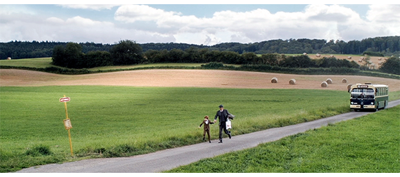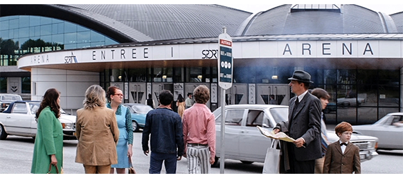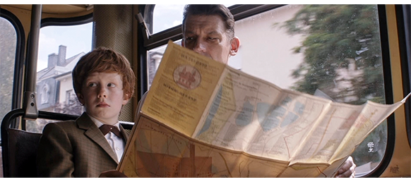 翌日、もしくは、数日後、きちんとした服装をしたフレディが、ベッドに寝間着姿で座っている母に、「僕、入団テストに行ってくるね」と言うが、それに反対の母は、僅かに頷いただけで何も言わない。そこに、父が入って来て、「行くぞ、フレディ、バスが来る」と急がせる。2人は、野原の真ん中にポツンと立ったバス停に向かって急ぐ(1枚目の写真)〔なぜ、教会の近くにバス停がないのだろう?/バスの行き先の「HOOGRIJK」は架空の地名〕。2人がバスに乗った時は、誰も客がいなかったのに、途中でどんどん乗って来る。1975年を思わせる光景としては、黒人とベルギー人のカップルが通路を挟んで反対側の座席に座った時、それを変な顔で見たフレディが、できるだけ離れようと窓側に詰めたこと〔当時は、移民に対して差別意識があった?〕。その後で、ヒッピーの2人組が2人と向かい合った席に座った時も、体を引いた。でも、このヒッピーは、手に持っていた白ネズミでフレディを喜ばせた。そして、バスの終点。地図を持った父は、競技場がどこにあるか必死に探すが(3枚目の写真)、バスで見えなかっただけで、道路を挟んで向かい側にあった。