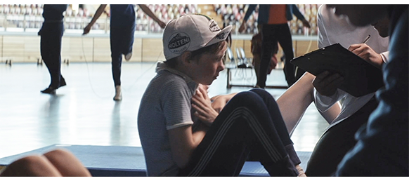 受付けを済ましたフレディは、他の少年達と一緒に、各種の体力テストを受ける。映画で紹介されるのは、縄跳び、腹筋(1枚目の写真)、全速での自転車を漕ぎ(2枚目の写真)、その直後の心拍数の測定(3枚目の写真)。