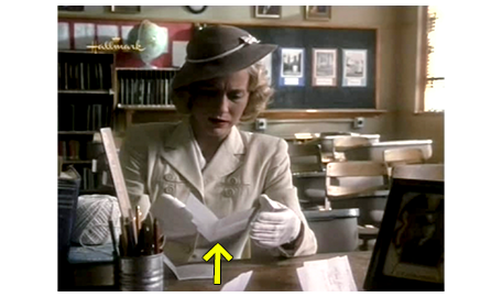 パトリックは、スコットがアーニャにさせた行為を褒めたあとで、アーニャが点字で打った手紙をスコットに渡す(1枚目の写真、矢印)。スコットは、点字を、2人に聞こえるように読み始める。「隠遁生活から救ってくれたスコットへ。私のベルを持っていて欲しい。きっと、歌ってくれるわ、喜びの歌を。いつまでも愛しているって、忘れないでね、アーニャ」。それを読むスコットの目は、涙で溢れる(2枚目の写真)。