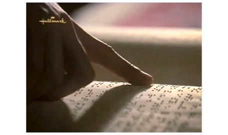挑戦への最初のシーンは、白い杖の練習から。スコットは、歩道を歩き、車通りの少ない道まで連れて行く。「もうすぐ、通りとぶつかるよ。交通はある?」。「なんで分かると思うの?」。「耳で確かめるんだ」。「何も聞こえないね」(1枚目の写真)。「じゃあ、渡ろう」。次のシーンでは、2人が同じ点字の紙を前にして、スコットが1字1字読むのを、アーニャがチェックしている(2枚目の写真、矢印)。そして、歩道を歩くシーン。スコットは、常に右手をアーニャの左肩に置き、並んで歩いている。スコットは、点字の紙を家にも持ち帰り、母から一緒に出かけないかと訊かれると、「点字を練習しないと」と、断る(3枚目の写真)。その重要性をまだ理解できていない母は、「学校でも、頑張って欲しいわね」と的外れのことを言い、それを聞いたスコットは、母に失望する。