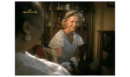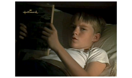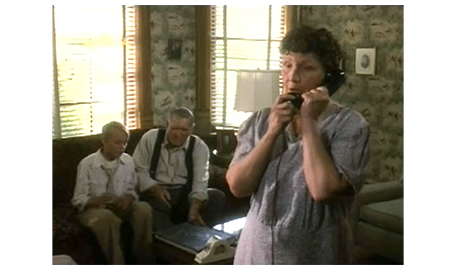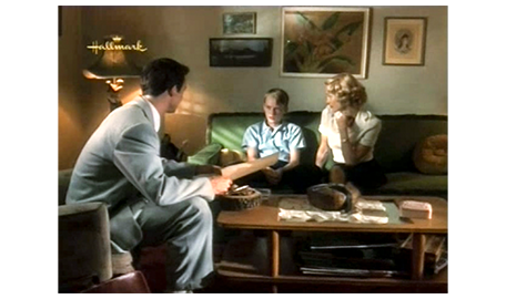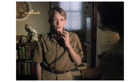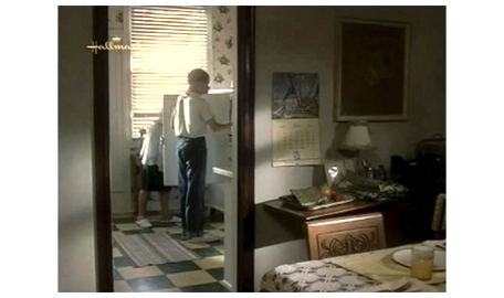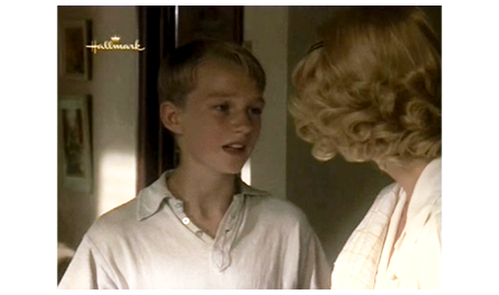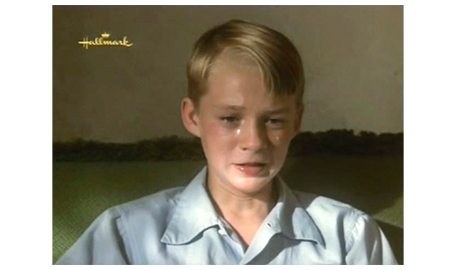 そして、母のところに 待ちに待った電話が掛かってくる。飛びつくように受話器を取った耳に、「ママ?」という声が聞こえてきて(1枚目の写真)、母はホッとする。「今、どこにいるの? 大丈夫なの?」。「お祖母ちゃんとお祖父ちゃんのトコ」。「どうやって、そんな遠くに?」。スコットは、それには答えず、「アーニャが死んじゃった」と話す。「知ってるわ。今から迎えに行くから」。「ダメ。何日かここにいたい」(2枚目の写真)。「まさか」。「お願い、ママ、お願い」。その必死の願いを聞いた祖母が電話を代わる。そして、「ジーン」と呼びかける。スコットの母は、警戒するように、「お母さん」と硬い声で答える。「是非、この子と一緒にいたいの」。「それは無理じゃない。彼、歯ブラシも下着も…」。「必要なものは用意するわ。土曜日には連れて帰るから」(3枚目の写真)。「急に言われても。バスに乗せて、お金は送るから」。その冷たい返事を聞いても、追い出したのは自分なので、祖母は、懺悔の心を込めて、「彼、とてもいい子ね、ジーン。よく頑張ったわね」と褒める。母は、「スコットに、土曜に待ってると伝えて」と言って電話を切る。母は、スコットが無事だったことと、勘当された母から優しい言葉をもらったことで、張りつめていた気持ちが一気に崩壊し、夜中付き添ってくれパトリックに肩を抱かれて泣き始める(4枚目の写真)。