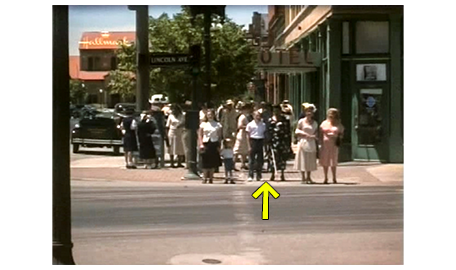 アーニャが初めて信号交差点に挑戦する場面。アーニャが、「交差点だね」と言う。スコットが、「車の音から?」と訊くと、「建物が変わると、そよ風が感じられる」と答え、スコットは、3度目の 「すげえ」。そして、「信号があるんだ」と教える。「そうね」。「今は、青か赤かどっち?」。「分からないわよ」。「この交差点を渡らないと、弁護士の事務所には行けないよ。車の音をちゃんと聞かないと」(1枚目の写真、矢印は2人)。アーニャは反発して帰ろうとするので、スコットはアーニャの手を取る。そして、信号が青になると、一緒に渡り始める、すごく楽しそうだ(2枚目の写真)。その姿を、偶然 母が目にし、ますます快く思わなくなる。