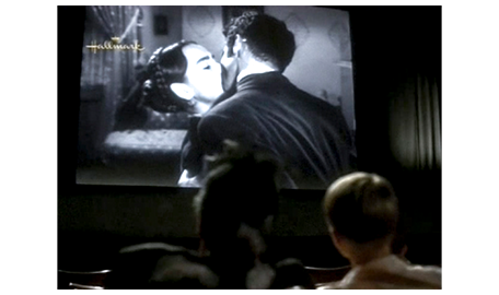 アーニャをバスから降ろした後、スコットは、映画館に向かう。アーニャは、「映画を観るの?」と驚く。「そうだよ」。「どこにあるの?」。「誰かに、訊かないと」(1枚目の写真)。そこで、アーニャは、「済みません、どなたか助けて下さい」と声を上げる〔これも、弁護士の事務所を探す時の練習〕。手伝おうと立ち止った夫人は、盲人が映画館の場所を訊いたので驚く。次のシーンで2人が観るのが、先に言及した『女相続人』。アーニャは、映像は見られないが、俳優の声は聞こえる。男が、“女相続人” に愛を打ち明けた時、アーニャは、「彼女の様子は?」と スコットに尋ねる。「すごく幸せそう」。すると、アーニャは、大きな声で、「彼を信じちゃダメよ」と言い、周りから「しーっ」の声が起きる。その後も、スコットが、「彼、キスした」と教えると(2枚目の写真)、今度は小声で、「彼は、愛してなんかいない。お金だけが目当てなの」と教える〔極めて正しい解釈〕。「なぜ、分かるの?」(3枚目の写真)。「声の調子から」。