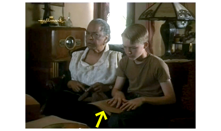 翌日、スコットが、図書館から戻って来て、「本は借りてきたけど、図書館員は、点字の本は一切ないって言ってた」と言い、本を見せる。アーニャは、「お前さんのだよ。聞かせて欲しかったから」と言う。文字がうまく読めないスコットは、「僕、読むのはぜんぜんダメだって言ったじゃない」と嫌がるが、アーニャは、「何を、怖がってるんだい? 間違えることかい?」と訊く。「僕、こんなことやりたくない」。「これまで、お前さんを傷付けるようなことなど、何もさせなかっただろ?」(1枚目の写真、矢印は本)。その言葉で、スコットは仕方なく、アーニャの隣に座る。「読んでごらん。後について行くから」。スコットが借りてきた本は、ディケンズの『二都物語』〔小学校6年生には、難し過ぎると思うのだが…〕。文章は、「It was the best of times」から始まる(2枚目の写真)。その2番目の「was」を、スコットは 「saw」と、逆に読んでしまう。文章を暗記しているアーニャが、「was」だと教えても、その時は読めても、次に詰まった「best」のところで、もう一度初めから読み直すと、また「saw」に戻ってしまう。そこで、アーニャは、同じものの点字版を渡す。すると、スコットは、ゆっくりだが、滑らかに、読み進んで行くことができる。「それは最高の時であり、最悪の時だった、それは叡智の時代であり、凡智の時代だった、確信の時期であり、不信の時期だった 光明の季節であり、暗黒の季節だった。希望の春であり、絶望の冬だった…」(3枚目の写真、矢印は点字の紙)。アーニャは、スコットが 点字だと読めるのに、本だと読めないことを不思議がる。スコットは、点字だと指に触れて順番に読むから、間違えないから と答える。