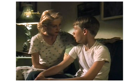 母は、家の前に座って、自分のした行為を反省する(1枚目の写真)〔2人が住む、長屋式の住宅街がよく分かる〕。そして、スコットの部屋に入って行くと、ベッドの隅に座り、「ホントにごめんなさい。なぜ、あんなことしたのか分からない。二度と叩かないわ。自分が無力に思えたの。どうしてあげればいいか、分からなくて」と語りかける。そして、頬に優しく手を当てると、「心から愛してるわ。坊や」と言って、涙を流す(2・3枚目の写真)。母が部屋を出て行った音を聞き、スコットが目を開けるので、今の言葉は、すべての耳に入っていた。しかし、翌朝、スコットが起きて来ると、母は、「授業はあと1週間で終わりだから、学校には行かなくていい。でも嘘を付いたから、夏休みの間、自転車は取り上げる」と宣言する。スコットが、アルバイトに困ると抗議しても、「知らないわ。歩くしかないわね」という冷たい返事。昨夜の涙は、叩いたことへのお詫び。嘘とカンニングを許した訳ではない。