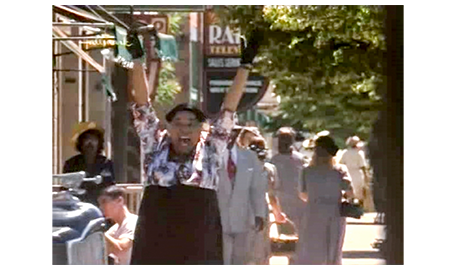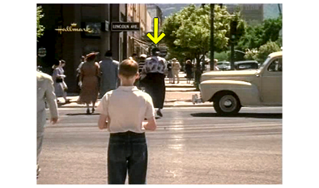 さっそく2人は、いつもの信号交差点に行く。もう手はつないでいない。スコットは、「信号の変わる音と、車の音をちゃんと聞くんだよ」と注意する(1枚目の写真)。さらに、「渡り終わるまでに、40秒しかないからね」。ここで、歩行者信号は青になるが、当然、アーニャは分からない。しかし、音で青になったと分かったアーニャは、車道に足を踏み出す。すると、1台の意地悪な白い車が、大勢歩行者がいるのに、わざと急ブレーキをかけて横断歩道の手前で停まり、アーニャは、思わず、体を背ける(2枚目の写真、矢印はスコット)。カメラの向きが変わり、交差点の手前から、交差点を最後尾で渡って行くアーニャを、スコットが心配そうに見ている視点になる(3枚目の写真、矢印はアーニャ)。歩行者用の信号が黄色に変わり、赤になるが、もう1台の紳士的な黒い車は、アーニャが歩道に上がるまで、じっと待っていてくれる。歩道に上がったアーニャは、いつもスコットが使っていた、「すげえ」という言葉を真似して使い、両手を上げて嬉しそうに叫ぶ(4枚目の写真)。信号は赤でも、車を縫って交差点を走って渡ったスコットは、叫び続けているアーニャに抱きつく。老いた黒人の女性と、白人の少年の、これほど幸せそうな映像は(5枚目の写真)、他の映画では見ることのできない、最高のプレゼントだ。