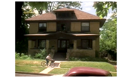 スコットが、アルバイトをしている薬局〔食料品店の一部〕に入って行くと、主人が、「君の配達ルートにいくつか街区を追加することにした。エディが辞めたんだ。毎週働く時間が増えるな〔時給なので収入も増える〕。異議は?」と訊く。「ありません!」(1枚目の写真、矢印は配達する袋)。スコットは、二階建ての家の前に自転車で乗りつける(2枚目の写真)〔この辺りの住民がすべて黒人なのは、一種の差別なのだろうか?〕。スコットがドアをノックすると、中から、「誰?」という声がする。「タフ薬局からの配達です」。ドアが開き、アーニャが姿を見せ、「新人だね?」と訊く。アーニャの目が自分より高い正面を見ているので、スコットは後ろに誰かいるのかと一瞬振り向き、「はい、奥さん」と答える(3枚目の写真、矢印は薬の袋)。「早く入って。家じゅうハエだらけにしたくない」。スコットは、ドアから中に入る。「前の子より若いね」。「はい、奥さん」。「財布を取ってくるわ」。スコットはドアを閉める。