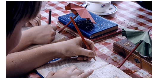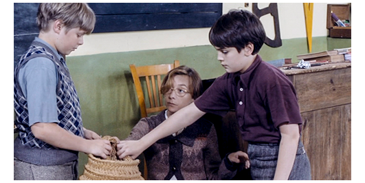 ②「この学校では、すべてがコミカルだった。ミュミュの周りで働く人々、彼女の尋常でない教え方、戦後 2 年目の 1947 年における学校の雰囲気、占領の影響の残る物資の欠乏、そして、私がよく知っていたこの地方の生活。こうした状況下で、子供と “彼を好きになる先生” の愛と慈しみの物語を、ドキュメンタリーと民族誌学の側面を忘れずに描くことに、私は非常に興味を持った。それと同時に、愛を取り上げられた子供時代の寂しさを、大人の側の寂しさと結び付けて表現してみたかった」。