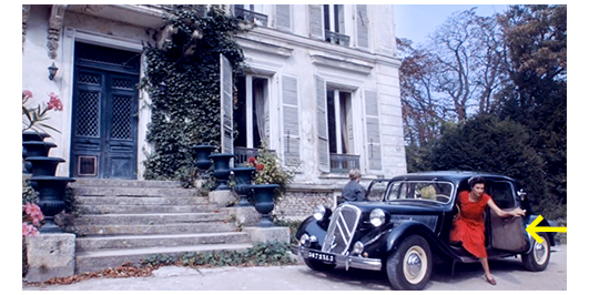 週末、ペルシャールとロジェが門のところで待っていると、ペルシャールの母親が、シトロエン・トラクシオン15 SIX Dを運転して息子を迎えに来る(1枚目の写真)。ペルシャールは、「この子、ロジェ・ランティエ、僕の新しい友だち」と紹介する。母親は、ロジェに 「今日のロイキのお客様ね?」と声をかける。「はい、マダム」。ペルシャール:「何時までいい?」。「ミュラール先生は19時だって。さあ、車に乗って」。ペルシャールは、母親に、「ロジェのために、100キロ出せない?」と頼むが、こんな田舎道じゃダメよ」と言われてしまう。母親:「あなたのパパの車は?」。「シムカ8」。ペルシャールが、「ゴミ」と言うと、「ロイキ、お友だちに失礼でしょ。シムカはいい車よ」。「亀だ」。「だから何? 黙りなさい。バカな子ね」。母親は、ロジェの姓を何度も口にし、「結婚してランティエになった友だちがいたわ」と、思わぬことを言い出す(2枚目の写真)。「あなたのパパ、訪問販売員?」。「はい、マダム」。「じゃあ、彼女に間違いないわ。ジェルメーヌのフランソワーズ・ルタイヨーが よろしくって、伝えといてね」。車は、豪邸の前で停まる。ここで驚いたのは、運転席や助手席のドアが、前に向かって開いたこと(3枚目の写真、矢印)〔後部座席のドアは普通に開く〕。