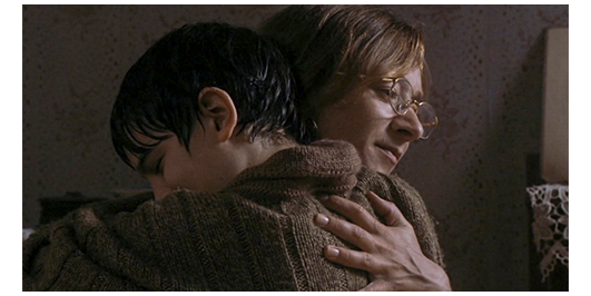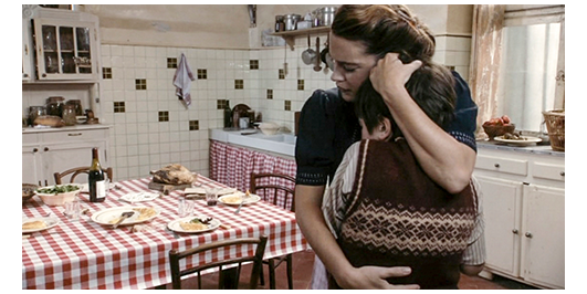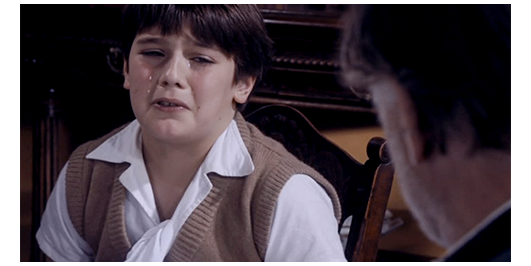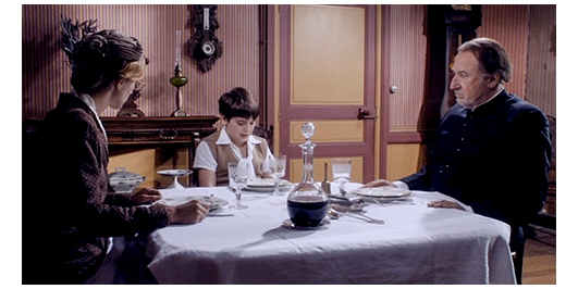 司祭は、ミュミュと一緒にロジェも昼食に招待する〔時計は12時7分を指している〕。司祭は、「父と子と聖霊の名において…」と祈りを捧げ、「アーメン」で終わる。すべての祈りが終わる前にナプキンを手に取ったロジェは、泣き始める。「どうした? なぜ泣いてる」。ロジェは泣くだけ。「怖れずに、話しなさい」。「なぜ、両親は来なかったのですか?」(1枚目の写真)。ミュミュ:「もう、説明したでしょ」。「いいえ、絶対そうじゃありません。サン・シャルルでも同じでした。僕はずっとコレージュで過ごしました」(2枚目の写真)。司祭:「一度も来なかった?」。「ほとんど1回も」。ミュミュ:「なぜ?」。「知りません。友だちはみんな帰るのに、いつも僕だけ。みんなは、僕の素性が悪くて、不良っぽいと言います」。「そんなことないわ」。「いいえ、そうなんです」。「きっとあなたが、少し、行儀が悪いからよ。お兄さんのように物静かになれば、もっと愛して下さるわ」。「あり得ません」。ミュミュは、「落ち着いて」と言って、ロジェの頬に触れる(3枚目の写真)。「悪いのはいつも僕で、兄さんは常に正しいんです。母さんは、彼がいない時だけ、僕に優しいんです」。「彼って?」。「父さんです。僕、彼が嫌いです」。司祭:「そんなこと、言うもんじゃない」。「それが現実なんです。残念ですが」。ロジェの手が汚れていたので、洗いに行かせている間に、ミュミュは司祭に、「あの子は、深刻な問題を抱えています。彼の両親と話すべきではないでしょうか?」と言うが、その後、“何事にも後ろ向きでやる気がなく、変に短気で暴力的” な司祭が何を言ったのかは分からない。