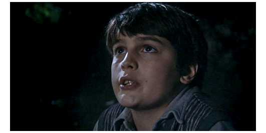 この授業が終った後、ロジェは1人残るように言われ、席に戻らされる。ミュミュは、ロジェの成績を見ながら、「なぜ、お父さんは、あなたのことを悪し様(あしざま)に言うのかしら? あなたは、知的で有能なのに」と評価した上で、「無料証明書〔certificat libre、詳細は不明〕を用意するつもりよ」とまで言ってくれる(1枚目の写真)。「数学と作文は少し苦手だけど、すぐに追いつけるわ」と言い、黒板に 「450/13」と書き、解かせる。暗くなって、寝室に行くと、もうベッドで寝ていたペルシャールは、「ミュミュは、何て言ったんだ?」と訊く。「証明書を取らせたいって」。そう答えた後で、「忘れてた、星だ!」と言って、ロジェは再び寝室を出て行く。ロジェは、星空を見上げて数え始める。そこにペルシャールがやって来て、「何してるの?」と訊く。「星を数えてる」。「どうして?」。「知らないの?」。「ううん」。「2ヶ月の間、毎晩 星を12個数えなくちゃいけない」(2枚目の写真)「最後の夜に願い事をすると、叶うんだ。でも、一晩でも忘れたら、それで終わり」。「星が見えなければ〔雨の日?〕」。「それはいいんだ。見える時には、やらなくちゃ」。「ちゃんと叶うの?」(3枚目の写真)。「いつだって」。「誰から訊いたの?」。「サン・シャルルにいた子」。「願いは何?」。「いい人生が送れて、両親には二度と会わなくて済むように」。「僕の願いは、お金を持って、世界中を旅して回ること」。