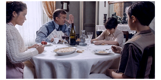 家に向かう車の中で、キチガイ親父はロジェに、「満足か? 何を考えてる?」と訊く(1枚目の写真)。ロジェは、まだ涙を流したまま、「わざとやったんじゃない。ブラシが顔に当たるなんて思わなかった」と弁解する。「だが、退学になっちまった。先生を殺したかもしれないんだぞ! これから お前をどうしたらいい」。ここで、母が口を出す。「サン・ジョゼフはどうかしら?」。「受けれてくれるなら」。「やってみましょ」。食事の席で、ロジェは泣きながら、「コレージュなんかに行きたくない。兄さんみたいに通学したい」と、すがるように頼む(2枚目の写真)。しかし、キチガイ親父は、「なんで お前を幸せにしてやらにゃならん。お前 一つでもいいことしたか? 兄さんは、私たちを満足させてくれる。お前はゼロだ! 暴力しか振るわんじゃないか! 今度だって! 寮生しか許さん! 少年院じゃなくて幸運だと思え!」と怒鳴りまくる〔不倫の子で他人としか思っていない〕。ロジェは、それでも、「嫌だ。行きたくない」と言うと、「黙れ!!」と叫び、叩こうとする(3枚目の写真)。