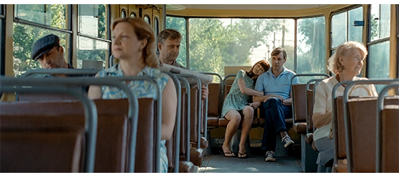 その直後のシーンは、ボリスとイルカが2人だけで通りを歩き、その後、路面電車に乗る。映画の路線がどうかは知らないが、オデッサの路面電車の創業は1910年から〔日本最古の京都電気鉄道・伏見線は1895年〕。面白いところは、周囲に家も何もない林の中を路面電車が走っていること。イルカが、いつしかンボリスにもたれてしまうシーン(1枚目の写真)でも、背後には木しか映っていない〔街路樹ではなく、家一軒ない林の中〕。場面は、突然、黒海沿岸に変わり、水着姿になった2人が(というよリ、イルカが)、べったりとくっついている。ただ、ボリスは、それを心良く思っている訳ではなく、離れるように指示する。イルカは、「知ってる? 私、もう男の人とキスしたのよ」と打ち明ける。「良かった?」。「ううん、気持ち悪かっただけ」。「私は 年配だ。君には 年配過ぎる」。「知らないだろうけど、あなたみたいな人、ここにはいないの」。このあと、祖父母の家での “うんざりする会話” が5分間続いた後…