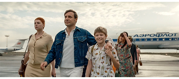 次に映るのが、エアロフロートの中型機から降りてくる一群の旅客の中に混じって歩く、ボリスとヴァルエーリ(1枚目の写真)。手荷物を受け取るターンテーブルの前に陣取ったヴァルエーリが、父のスーツケースが出てくるのを待っている(2枚目の写真)。その間も、空港内には異様なアナウンスが流れる。「アテンション! モスクワ行きの80-78便は無期限に延期されました」。ヴァルエーリは、スーツケースを見つけ、父が引っ張り上げる(3枚目の写真)。「レニングラード行きの38-74は無期限に延期されました」。父は、そのアナウンスに注意を払わず、航空会社のカウンターで相談もせず、ターミナル・ビルから出て行く。