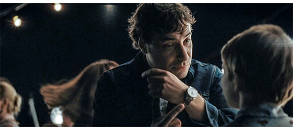 いきなり、ジョーリックの祖父の顔が映る。そして、理解不能な言葉を、訪ねてきた祖母に向かって投げかける。祖母は適当に聞き流し、自分のことを話し続ける。そこまでは、お互いの意思疎通度はゼロで無難だった。そこに、イルカが階段を上がって帰ってくると、「今日は、ライースお祖母ちゃん」と声をかけて部屋に入って行く。ライースが、ジョーリックの祖父に向かって、「どんどんきれいになるわね」と言うと、彼は急に大きな声でしゃべり出す。「何が言いたいの?」。祖父は、必死になって何かを伝えようとする。その時、ボリスがライースの階段を上って行くのが見え、祖父は、そちらに目線を向ける。「何なの?」。さらに大声になる。「イルカのこと?」。祖父の目が、またボリスに向けられる。「ボリス? それが何か?」。必死にわめく。「ボリスとイルカ?」。祖父は急にわめくのを止め、肯定するような素振りとなる(1枚目の写真)。自分の家に戻ってきたライースは、モスクワにいる妻と話してボリスの電話機を取り上げると、「アロチカ、ママよ」と言った後、具体的に何も聞いてなく、ただ単に “祖父の目線とわめき” から邪推した2人の関係を電話に向かって罵る。「アロチカ、お前の旦那はこっちで楽しんでるよ。イルカって娘っ子とね! まだ、子供なのに!」。それを聞いた2人の娘は、ボリスを責める。ボリスが、「どうかしているんじゃないのか? 冗談はよせ」と、2人に反論すると、ライースは、「少女との姦淫が冗談かい?」と、事実と懸け離れたことを言って、ボリスを貶(おとし)める(2枚目の写真)。一人常識のあるアーリックは、「待てよ、彼(老人)は口がきけないんだぞ」と庇う。しかし、ライースは、「何もかも見たって言ったわ!」と取り合わない。頭に来たボリスは、「何を見たんだ?!」と、食ってかかる。アーリックは、推定無罪を主張するが、妻のミーラからは、「いつから、彼の弁護士になったの?」と言われる始末。ボリスは、頭にきて部屋から出て行く。すると、ライースは、「そんなつもりじゃなかった。何てことしたんだろ」と泣き出すが、愚かな行為が残した傷はそんなことでは消えない。