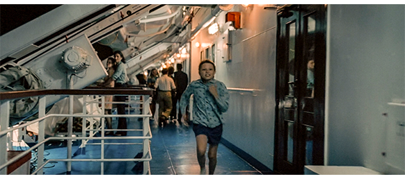ボリスが階段を降りると、岳父がスーツケースをトランクに入れ、岳母がヴァルエーリを抱きしめている。岳父は、トランクを閉めるとボリスを抱いて背中を叩く。岳母は、ヴァルエーリに、「お祖母ちゃんのこと、好き?」と訊く(1枚目の写真)。「うん」。こうして、2人は、急な出で立ちで港に向かう。港には、大きな客船が停泊している(2枚目の写真、船名はアブハジア(地域名))。「悪くないだろ?」。「航海するの?」。「いいや、検疫だ。船内に5日滞在し、毎日検査を受ける」。「なぜ?」。「感染していない確認が取れたら、モスクス行きの飛行機に乗れる」(3枚目の写真)。「こんなの嫌だ。なぜやるの、パパ?」。「何を嫌がってる? 外航船に乗るのは初めてじゃないか」。