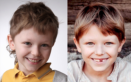 ヴァルエーリ役を演じるStepan Seredaは 2006年10月31日生まれ。撮影は2018年の夏なので、撮影時は11歳。映画は これが5本目で、いずれも脇役。ネット上で見つかった幼い時の写真は下に示す2枚だけ。どの映画の時のものかは不明。