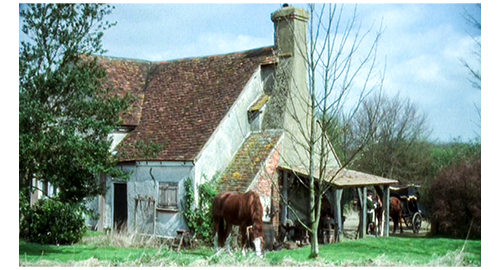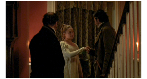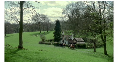 同時進行で進んでいるので、次は、フレミング邸。「わしには、立場がある。威信もあり、尊敬もされている。わしが 言いたいことはだな、わしらは 弟の死に勇敢に耐えてきた、妹の死にも、そして、お前の母の死にも。誰もが、それを高く買ってくれた」。これだけ言った後、次の厳しい言葉がアグネスに向けられる。「お前を追放することもできる。普通なら そうするだろう! どこか遠くに」。「出て行きます。当然ですわ」。しかし、フレミング氏はあくまで優しい。「わしが、追い出すと思うか? 失うものが多くても、わしにはできん」。「ごめんなさい お父様。ほんとに、ごめんなさい」。「明朝、田舎に向かおう。どこか、お前を隠せる場所に」(2枚目の写真)。この箇所は、【第51章 ❼モンクス:「娘の父は恥と不面目でいたたまれなくなって、二人の子供を連れてウェールズの辺ぴな片田舎へ夜逃げをして、友達に逃げた先がわからないようにと、自分の名前まで変えてしまいました の表現に近い。そして、次の節を飛び越して、翌日になるが、関連する内容なので、一家が田舎家〔それなりに立派な〕に2台の馬車で引っ越す短いシーンを先に紹介しておこう(3枚目の写真)。