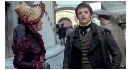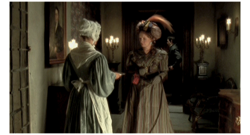 ここで、場面はパリのとある街角に。馬車から降りた男女二人がそう広くないアパルトマンに入って行く。入口では召使が 「ボン・ソワール、マダム、ムッシュー」と言って出迎える。威張った感じの悪い中年後期の女が中に入って行くと、女中が 英国からの手紙です」と言って、一通の封筒を渡す(1枚目の写真)。女はそのまま階段を上がって行く。その後から、落ち着きのない二十歳前の男がついていくが、それを見送った後の女中の “嫌悪感” に満ちた顔は、二人が如何に嫌われているかを端的に示している。この女は、原作では 「モンクスの母」という名称しか与えられていないが、エドウィンの年上の妻エリザベス・リーフォード。そして、男は、その息子で、原作では謎の人物として登場するモンクス。原作では計3回だけエドワード・リーフォードという正式名が使われる。その1回目は、【第49章 ❷ブラウンロウ:「お前の顔を見てさえ昔の友のことを思い出すからこそ、こういったいろいろのいきさつがあればこそ、今お前を――そうだ、エドワード・リーフォード。エリザベスは、居間に行くと、息子に向かって、「父方の、リチャード伯父さん… 憶えてるでしょ、ボンクラでも。病気の伯父さんのこと」と、バカにしたように言い出す。そして、リチャード・リーフォードには “腫れ物” があり、「ローマで療養中。でも、回復の見込みなし」「で、お前の父さんはローマへ急行。理由は明白。お金よ」と、手紙の内容から得た推測を話す。「お金なら、父さんが送ってくれる」。「そんなお金じゃ、とても足りないわ。手紙には、こう書いてある。『送金を増やす。妥当で公正な額だ』と。何が妥当よ。こんな はした金」。「僕のことは、何か書いてない?」(2枚目の写真)。このモンクスについて、第51章の❹(後述)に 「反抗的で、性悪で、意地悪で、早熟ですぐかっとなる性分で、父親を憎むように育て上げられた」と書かれているが、映画では、少なくともこの時点では、それほど悪い人間ではないし、父のことが嫌いでもない。また、エリザベスについては、先の 第49章の❹の「母親〔エリザベス〕は大陸の軽佻浮薄な生活にうつつを抜かし」 以外に記述は一切ない。この、ロクデナシの女は、「けちけち暮らすのは、もう うんざり。早急に手を打たないと。お金があれば、 すべてが変わる。もう一度、人生を楽しまなきゃ。お前の父さんを震え上がらせてでも。何が何でも後を追わないと」と、ローマ行きを決心する(3枚目の写真)。