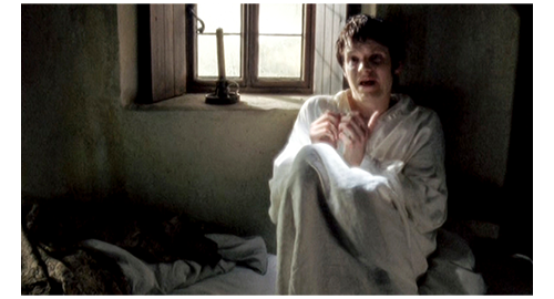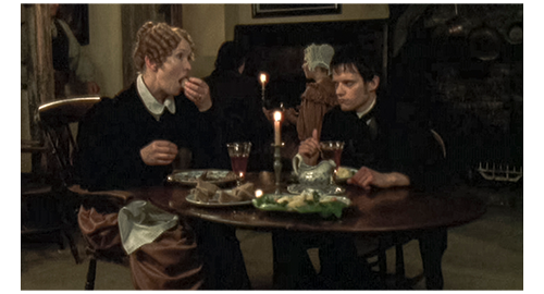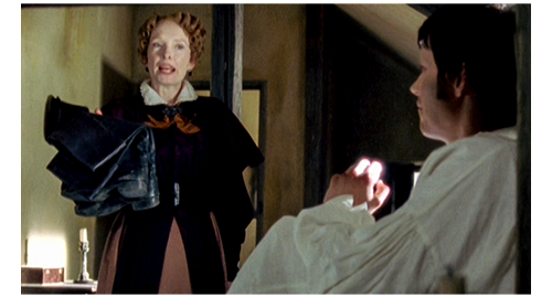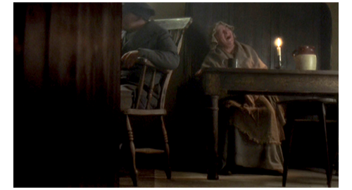 田舎の旅館に戻った二人。エドワードは、「僕を非難するのは筋違いだ。母さんが、自分でやればいいんだ。何でも… 殺すなり切り刻むなり」と意見する(1枚目の写真)〔なぜ、鬼女が自分でしない?〕。エドワードは、さらに、「僕は幸せだよ。もらえる お金で十分だ。不足しないし、生活できるから」と主張する。しかし、鬼女は、「女〔アグネス〕は、どこかに居るはず。ドブで死んでりゃ、赤ん坊も… 最高だけど。生きてても遠くには行けない。せいぜい、村が幾つかと町が一つだけ。十分、見つけられる」と、しつこい。「だけど、どうやって? 会う人毎に訊くの? 『金髪で汚れた服を着た妊婦を見ませんでしたか?』って? それとも、産婆か救貧院へ行って、『赤ん坊は いませんか?』って?」。「そうよ、その通りにするの」(2枚目の写真)。