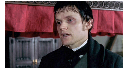第1節の4枚目の写真は、将来オリバーの母となるアグネス・フレミング。そして、この直後の恋人同士のショット(1枚目の写真)で、アグネスと一緒にいるのは、エドウィン・リーフォード。アグネスは、「てっきり 会うだけかと」「今まで、こんなに歩いたこと なかったわ」と言い、エドウィンは、「初めてじゃない」と言うが、アグネスは、「二人きりは 初めて」と言い、それを聞いたエドウィンはアグネスにキスする。恐らく、このデートの際に、エドウィンはやってはならない行為をアグネスにしたのであろう。このシーンを含め、この先の数節の元となることは、原作にどう書かれているのだろう? ここでは、小池 滋氏訳の『オリヴァー・トゥイスト』から、該当する箇所をピックアップする(ただし、第何章に該当するかは、この訳本〔1838年の初版本の訳〕の章数と 手元にある英語の本(最終改訂版)〔1867年〕の章の数が違うので、ここでは普通に出回っている、最終改訂版の章数(黒丸白抜きの番号は記載順)を示す/名前は、このサイトの標記に統一する)。【第49章   ❺ブラウンロウ:「お父さん〔エドウィン・リーフォード〕がその父親から無理に結婚させられたのは、まだほんの若い頃だったからな」。❸ブラウンロウ:「家の名誉とか、最も下劣であさましい野心の犠牲者となって、お前の気の毒なお父さん〔エドウィン〕がまだ若い頃に、いやいや惨めな結婚を強いられた結果、ただ一人だけ親に似ぬろくでもない子供が生まれた。それがお前〔エドワード・リーフォード/偽名モンクス〕」。❹ブラウンロウ:「二人〔エドウィンとエリザベス・リーフォード〕が別れてしばらくしてから、お前〔モンクス〕母親〔エリザベス〕大陸の軽佻浮薄な生活にうつつを抜かし、自分より十も年下の夫〔エドウィン〕のことなんか、けろりと忘れてしまった。夫の方は将来をすっかり台なしにされてしまい、イギリスでぶらぶらしているうちに、新しい友人〔フレミング氏〕ができた」。❻ブラウンロウ:「新しい友人〔フレミング氏〕というのは退役の海軍将校で、奥さんに半年ほど前に死なれ、子供が二人残っていた。二人とも女の子で、一人は十九歳の美しい娘〔アグネス・フレミング〕、もう一人〔ローズ・フレミング〕まだほんの二、三歳だった」。❼ブラウンロウ:「お前〔モンクス〕のお父さん〔エドウィン〕があちこち放浪しているうちに、この人たちが住んでいる辺りにやって来て、そこに住みつくことになった。最初のうちはただの知り合い、次いで仲良し、そして親友へとぐんぐん発展して行った… 老退役将校が彼を知るにつれ、次第に愛するようになった。それだけで終わってくれればよかったんだが、その娘さん〔アグネス〕までが同じ気持ちを抱くようになってしまった」。❽ブラウンロウ:「それから一年たつと、彼はその娘とおごそかに結婚の約束の誓いを立てた。汚れを知らず世間も知らぬ乙女の初恋の相手、熱烈な唯一のまことの愛情を捧げる相手となったのだ」】【第51章 ❸モンクス:「父〔エドウィン〕はその娘〔アグネス〕に対して、ある秘密の事情があるので――そのうち説明するが――今のところ結婚できないのだ、というようなことを言って、その場その場をごまかして来たんですな。そこで娘の方でも相手をいつまでも信用して、つい深入りしたあまりに、とり返しのつかぬ一線を越えてしまった。その時娘の方はあと数ヶ月で子供が生まれるばかりになっていた」】。上記の映画のシーンは、この第51章の❸の「深入りした」直後と思われる。映画での次のアグネスの言葉は、「でも、明日には…」。そして、エドウィンはすぐに、「また 戻ってくる。金持ちじゃないから、働かないと」と答える。この表現は、第49章の❹の「イギリスでぶらぶら」や第49章の❼の「放浪しているうち」とは全く違い、立派な家に住み、忙しい職に就いている。その次の会話。エドウィン:「できるだけ早く 一緒になろう。そして、残りの人生を僕と幸せに暮らそう」。アグネス:「父が、会いたがってるわ」。「困ってることでも、あるのかい?」。「父に殺されちゃうわよ」。そして、二人は、アグネスの父の家に行き、三人での晩餐会に臨む。さっきのアグネスの言葉が気になったエドウィンは、フレミングに、「教えて下さい。あなたが船長だった頃、誰かを 殺したことが あるかどうか」と質問する。「明らかな規律違反があった時とか、邪道に走った男に対して〔まさに、エドウィンそのもの〕、わしは 死ぬまでムチで打たせたことがある」「一度、カディスで卑劣な嘘つきを絞め殺したことも」。フレミングは、逆に、エドウィンにこう質問する。「ちょっと訊いておきたいんだ。君は、明日旅立つから今しかない。何か、秘密でもあるのかね?」(2枚目の写真)「何か、話してないことは?」。ここで、アグネスが、「秘密をお持ちでも、構わないんじゃなくて?」と助け船。「わしの目は確か