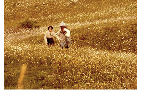 健康を取り戻したジャクーはリナと仲良しになった。ジャクーが少年から青年にスイッチする場面は、とてもシャレている。子供の2人が花の野原を駆けてくると、カメラはそのままで、一旦丘の陰で2人が見えなくなる。次に現れるのは大人になった2人だ。