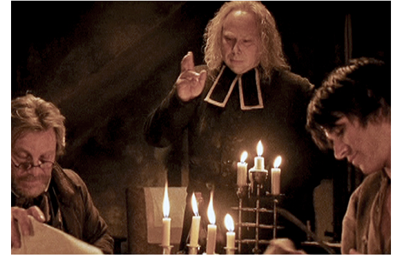 話せるようになったジャクーを司祭が質問攻めにする。最初はごまかしていたが、父が連行されて行った雪の日に「お前を見た。お前は、村外れの雪の上で、跪いていた」と言われ、「僕はジャクー・フェラール。父さんは、牢獄で死に、母さんは、悲しみで死んだ。僕は伯爵の森で暮らしてた。神がいるのなら僕を死なせてくれたはず。神は貧乏人は助けないんだ!」と一気に話す。食べようとしないジャクーを、「生を感謝せよ。自己憐憫に時を費やすでない。恩知らずな態度は自らを蝕むだけだ」と優しく諌め、ジャクーも「いただきます」と食べ始める。生涯、ジャクーが代父として尊敬する友の誕生だ。