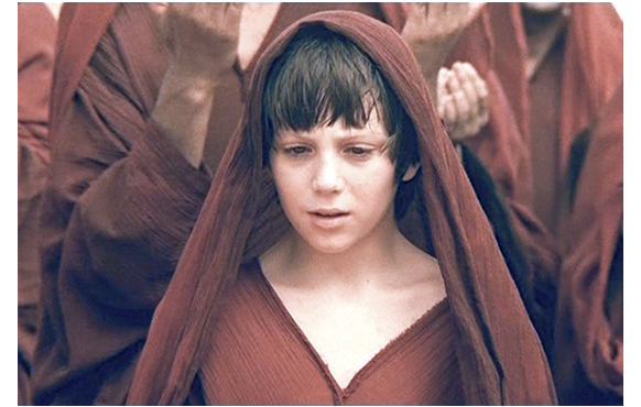 12使徒の1人、イエスに最も寵愛され最後まで生き残ったヨハネが、有名な『黙示録』(AD95-96年頃)を書くに至った経緯を描いた宗教映画。そこに、ほんの少しだけアーロン・ジョンソン(Aaron Johnson)が顔を見せている。ヨハネはAD6年頃に生まれ、AD100年頃に93・94歳で死んだとされている。古代ユダヤの統治者アグリッパ1世の治世下(AD41~44)でイエスの使徒たちが迫害を受けた際、ヨハネは小アジア(現トルコ西部)のエフェソス、スミルナ(現イズミル)、ペルガモン、ティアティラ(現アクヒサル)、サルディス、フィラデルフィア(現アラシェヒル)、ラオディキアにある7つの教会を指導したとされる。ローマ帝国の皇帝が、第11代のティトゥス・フラウィウス・ドミティアヌスに替わると、彼は自ら神性を宣言し、それを認めないキリスト教徒を激しく弾圧した。ヨハネも小アジアに近いエーゲ海の島パトモスに幽閉されるが〔ヨハネとしてではなく、一老人として〕、そこで主から直接啓示を受けて黙示録を記したとされる。黙示録はかつてヨハネが指導した7つの教会に当てられた書簡の形をとっている。映画の舞台となるのは、エフェソスの教会。そこで暮らすキリスト教徒たちは、圧制に対し、逃げ出すか、踏み留まるかで議論を交わしていた。そこにヨハネの書簡が次々と届く。それが特別なものだと信じるシルヴァーノと、その感化を受けた息子のヨハナン(アーロン)。映画は、その85%を故リチャード・ハリスが演じるヨハネに対する神の啓示とパトモス島の鉱山でのキリス教徒の強制労働に集中し、残りの10%をローマ皇帝とエフェソスのローマ総督の関係に振り、エフェソス教会のキリスト教徒には5%しか割いていない。従って、ヨハナン(アーロン)の登場は5場面のみ(映画開始後4分、31分、48分、61分、63分)で、台詞は開始48分の場面の3つのみ。しかし、アーロンにとって最初の映画出演であり、アーロンの軌跡を辿る意味では紹介する意義がある。『トムとトーマス』(2002)の2年前の作品だが、見た目上の違いはほとんどない。