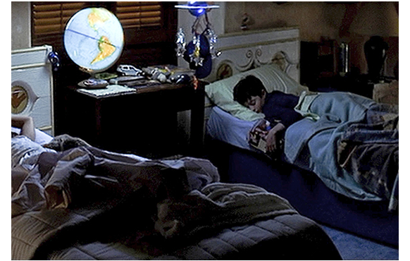 映画開始後25分。一瞬だけ子供達が映る。夜、テイラーが子供部屋を見に来るシーンだ。ここでも、ダニエルは寝顔がチラと映るだけ。娘とはちゃんと会話シーンがある。