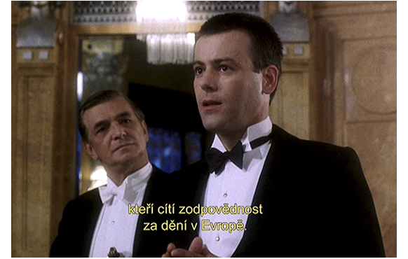 一方、サムは、ユダヤ人であることから、一切の演奏活動を禁止されてしまう。そこに英国大使館で演奏して欲しいとの依頼が入る。「謝礼は?」の問いに、マネージャーは「無報酬。ウィントン氏のチャリティ・パーティです」と言われて無視しかけるが、「彼は、ユダヤの子供達を英国に送り、ドイツ軍は、それを黙認しています」の言葉に、「素晴らしい」と承諾する。大使館では、サムの演奏終了後、ウィントンが地元プラハの上流階級の人々に、緊急の財政支援を嘆願する演説を行い、拍手で賛同を得た。サムはこの機会を捉え、甥のダビデを何とか汽車に乗せて欲しいと頼む。ウィントン:「ご両親も、同意を?」。サム:「分かりません。反対するかも」。ウィントン:「では、説得しないと」。