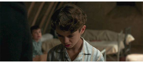 映画の冒頭、「パリ、1927年〔夏〕」と表示される。第一次世界大戦〔1914年7月28日~1918年11月11日〕が終わって8年半以上経過している。それでも、パリにある孤児院には、幼児の時に入所した戦争孤児が数多く残されている。少しでも、入所者を減らすために、子供たちは里親や養子に出されてきた。そして、その順番が、この映画の主人公、ポールにもやってくる。パリから100km以上南にある田舎から呼ばれた中年の女性セレスティーヌが所長室に入って行く。「遠方からお出でいただき、感謝します」。「わざわざ来たわけじゃないんです。クルブヴォワで兄に会う予定だったのです」。「私があなたにお会いしたかったのは、当所の孤児たちは国の保護下にあり、特に戦争孤児はそうなのです」(1枚目の写真)「でも、いつまでも続けられません。里親の家族に引き取っていただく必要があります。お分かりいただけるでしょう? その際、子供が新しい家庭と何らかの繋がりを持っている方が良いのです。ポール・カラデック少年のファイルには、あなたの名前しか見つかりませんでした」。その時、机の上の書類が一瞬だけ映る(2枚目の写真)。映画の観客には分からないが、文字が判明できる右端の書類を紹介しよう、そこには、この女性セレスティーヌ(Célestine)の文字はない。そこに書かれているのは、ポールの貴重な情報。上から、「生年月日: 1915年5月3日(今12歳)/生誕地: ブロワ(Blois)/姓: カラデック(Caradec)/名: ポール(Paul)/マチルド・ドゥ・ラ・フレネー(Mathilde de la Fresnaye): の息子/母の職業: 無職/ジョン・カラデック(Jean Caradec): の息子/父の職業: 鉄道員(cheminot)/住所(省略)」。後で分かるが、マチルドは出産時に死亡し、ジョンは戦死した。そこで問題となるのが、所長はなぜ、マチルド・ドゥ・ラ・フレネーの名を見落としたか、という点。名の後に、“de la” が付いているのは貴族の証拠。だったら、Fresnayeという貴族は1人しかいないのだから、確認することは容易で、そんな重要人物の娘なら、たとえ本人は死んでいても、簡単に見つかるであろう(それに気付かなかった担当者は、職務怠慢で無能な人間)。しかも、そんな重要な公式文書を、いくら観客には判読できなくても、なぜ、わざわざ見せたのだろう? 所長は、セレスティーヌに 「あなたは父親をご存知だったと思います」と訊く。「父親は知りません。母親は知っています」。「もし差し支えなければ、どのような ご関係ですか?」。「ええと… 同じ故郷の人でした。私の村の」〔不適切な回答〕。「この子をご存知でしたか?」。「いいえ。一度も会ったことがありません。お母さんは可哀想そうに出産で亡くなりました」。「遠回しに言うのは止めましょう。この男の子を引き取っていただけませんか?」。「つまり… 養子にしろと?」。「急ぐ必要はありません。お互いにうまくやっていけるかどうか、様子を見て決めればいいのです」。「所長さん、そ、それは… 無理です」。「でも、あなたは慣れておられる〔以前、里子を育てた〕」。「ええ、でも… この子は無理。連れて行けません」(3枚目の写真)。ここで、所長は、せっかく来たのだからと、会って行くよう勧める。所長は、ベッドが並んでいる薄暗い部屋にセレスティーヌを連れて行く。所長は、部下に、「カラデックを連れてきたまえ」と命じる。カラデックが、職員に襟を掴まれて連れて来られると、所長は、「ここで一晩過ごしたいか? マダムがお前に会いたいとおっしゃる。そんな態度で、お前を どう思われる?」と、里子に引き取ってもらえる可能性をちらつかせる。それに対し、ポールが 「構うもんか」と生意気に返事したので(4枚目の写真)、所長はポールの頬を強く引っ叩く。セレスティーヌは、まさかという顔で驚く。所長は、「あれは、子供のせいじゃないんです。壁に閉じ込められていると、頭の中にも壁ができるんです。だからこそ、家族と一緒にいることが大切なんです」と、最後の一押しをする。