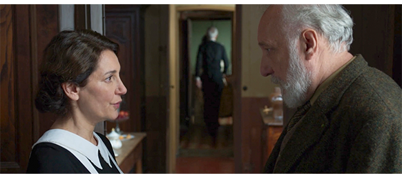 ポールは家に帰ると、当然、セレスティーヌに、真実を話すよう求める。ここから、セレスティーヌの話が始まる。「あなたのママは、私が初めて世話をした赤ちゃんだった。目に浮かぶわ、私のちっちゃなマチルド。伯爵は娘に夢中だった。伯爵にとって全てだったの。でも、マチルドは、ある若者と出会った。ジョン、あなたのパパよ。マチルドは彼が好きになり、恋に落ちたの」(1枚目の写真)「ジョンは軌道工だった」。「それって何?」。「彼はここに線路を敷きに来て、あなたのママが領地を馬で走っていた時、2人は出会った。2人は 森の中の小屋に隠れながら、愛を育んだ。伯爵は2人を引き離そうと、あらゆる手を講じた。彼は告訴までしたわ。あなたのママは、まだ未成年だったから。2人はパリへ逃げた。あなたの両親の愛は、何よりも美しく、強かった。そして、戦争が始まったの〔第一次世界大戦〕。あなたのパパは、出征し、戦場で亡くなった。そして、あなたが生まれた。伯爵は悲しみに打ちひしがれ、獣のような叫び声が聞こえた。伯爵は、あなたのママからの手紙に返事を出さなかったし、会うことも拒んだから。そして、彼女は棺桶に入ってここに帰って来た」(2枚目の写真)。「どうして 僕に黙ってたの?」。「どう話すべきか分からなくて、何も言えなかったの」。