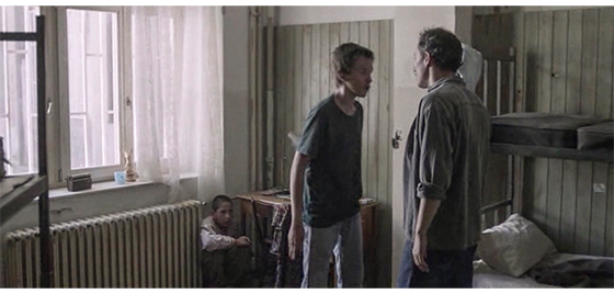 プチケのことを何も知らないボスニアに戻すなんて、あまりに可哀想だと思ったイルケは、その夜遅く、こっそりプチケの部屋に入って行き、眠っているのを起こし(1枚目の写真)、簡単な持ち物と一緒に、自分のアパートに連れて行く。そこで一夜を明かしたプチケを、自分の母と一緒に朝食を食べさせながら、「プチケ、よく聞くんだ」(2枚目の写真)「君は、施設には戻らない。二度とな。私は、君が逃げ出したと報告しておく。分かったか? 怖がらなくていい。君は安全だ」と話す。食事が済んだ後、プチケがいる居間のTVでは、「サラエボではイスラム軍による激しい攻撃が進行中です。昨夜から始まり、一日中続いています」と、セルビアにとって厳しいニュースを流しているが、プチケは眠っている。そこに、アパートを出て施設に向かう前に、イルケが入って来て、プチケに念を押す。「警察が君を探している。誰にも見られないよう気をつけるんだ。外に出ではダメだ」(3枚目の写真)。TVはさらにニュースを続けるが、昨夜遅く起こされたプチケはすぐに眠ってしまう〔イルケの警告も、半分眠っていて、頭に入っていなかった〕。