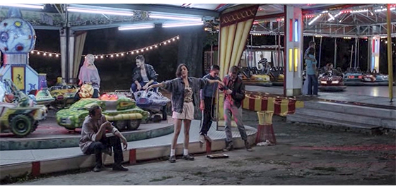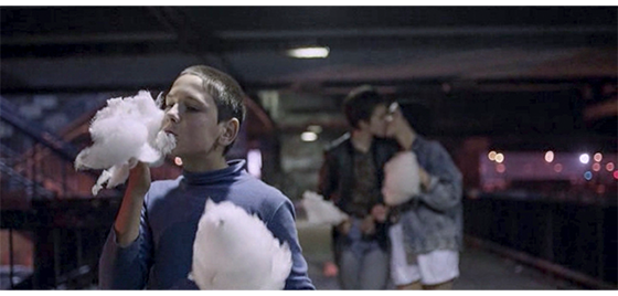 3人は遊園地に行き、ミニカーに乗って遊ぶ(1枚目の写真)が、プチケは楽しそうではない。遊んだ後、アリッサは、「皆さん、野生児よ、見に来て。たったの50ディナール〔1989年はハイパーインフレ時代なので円換算は不可能〕」と言って客寄せする(2枚目の写真)。ジカも、通りがかった女性に、「今晩は。野生児ハリスです。両親もいません。30ディナールあげて下さい」と売り込む。結局、集まったお金は110ディナール。ジカはそれで綿菓子を3つ買い、気に入ったプチケが1つ半 食べている間に、ジカとアリッサはキスを交わす(3枚目の写真)。プチケが綿菓子を食べ終わっても、2人のキスは続く。