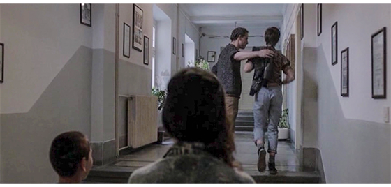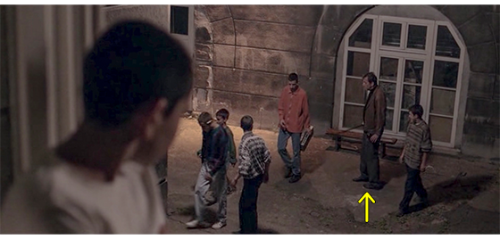 その夜、プチケが窓から覗いていると、施設の男性職員〔イルケより年上〕が、たむろしている不良難民たちに、「ここで何してる! タバコの火を消さんか! 自分たちの部屋に行くんだ!」と、相手が大きいので、長さ1mくらいの棒を上げて威嚇する(1枚目の写真、矢印は職員)。このあと、さっきの職員がタバコを吸いながら廊下を歩いていると、棒を持った5人の不良難民たちに襲われる(2枚目の写真、矢印は職員)。それからしばらくして、ケガの治った職員が、食堂で食べているプチケの前まで来て(3枚目の写真)、「プチケ、プチュリツァ、君宛の手紙が届いている。所長室まで行きなさい」と告げる。プチケが所長室に入っていくと、所長が手紙を読み上げる。「返還の要請。拝啓、貴校の生徒でありボスニア・ヘルツェゴビナ共和国国籍で未成年のハリス・プチュリツァを、1992年5月25日正午までに、ボスニア・ヘルツェゴビナ共和国トラヴニク市の社会センターまで出頭させるようお願いします。敬具」(4枚目の写真)。所長は、読んだ後、「荷造りを始めなさい。この手紙は、君が出て行く時に渡します」と言う。