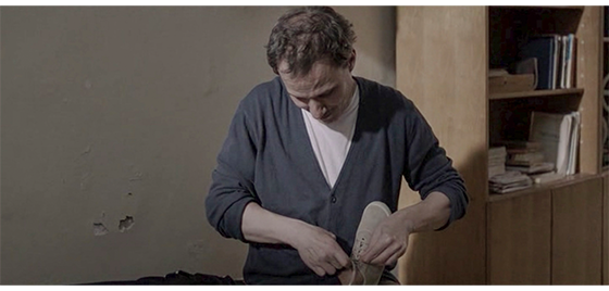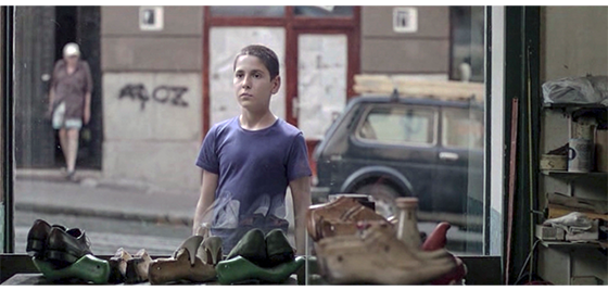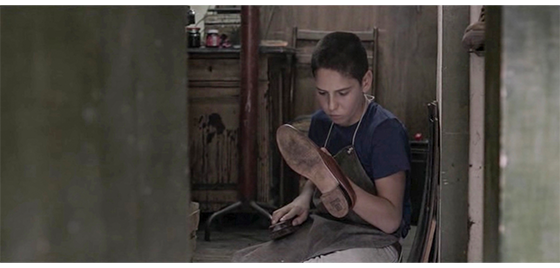 イルケはプチケを施設の外の街路まで連れて行き、そこから先は、「プチケ、一人で行くんだ。ずっと真っ直ぐ行けばいい。道は分かってるだろ」と言う(1枚目の写真)。左下に、「1991年春」と表示されるので、ジカの死後約1年が経過したことになる。プチケは車のことを考えずに道路を渡ったので、走ってきた車が急ブレーキをかける。どのくらい歩いたのかは分からないが、プチケは1軒の靴屋の前で立ち止り ショーウィンドウから中を覗く(2枚目の写真)。すると、中にいた年取った店主が、「さあ、入って」と手招きする。プチケがドアを開けて中に入ると、「わしの助手が来た。エプロンを着けろ。釘に掛かっとる」と言う。そのあと、店主がどのように指導したのかは分からないが、プチケが紳士靴を磨いている(3枚目の写真)〔施設を出た後、社会で働いていくための予備練習なのだろうか?〕。