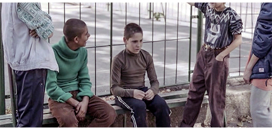 施設のTV室で、イルケとプチケがリラックスしてTVを観ている(1枚目の写真)。それを逆方向から撮ったものが、2枚目の写真で、左下に 「1992年春」と表示されているので、短い間にまた1年が過ぎたことになる。その間、1991年にクロアチアとスロベニアが独立を宣言し、一番北の端にあるスロベニアが1991年7月7日に独立する〔クロアチアの独立戦争は1995年まで続く〕。ボスニアは、1992年4月6日に独立を宣言し、本格的なユーゴスラビア戦争が始まる。「1992年春」という表記は、4月6日以降を意味すると思われる。なぜなら、2人が観ているTVのニュースで、「1200人を超える難民がベオグラードに到着し、全員が労働組合会館に収容されました。グルビチ、ドルヴァル〔現在ボスニア・ヘルツェゴビナの町〕、その他の町からの難民は、ベオグラードに到着するまでに5日かかりました。数百人の難民がクラリエボ、ヴェリカ・プラナ、アランジェロヴァツ、クラグイェヴァツ、バリエボ〔ベオグラードから離れた都市〕に収容されました」と伝えているからだ。プチケのいる施設にも、ボスニアから連れて来られた不良少年たちが、ミニバンから下りてくる(3枚目の写真)。