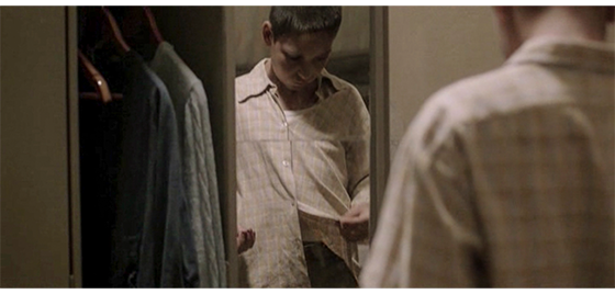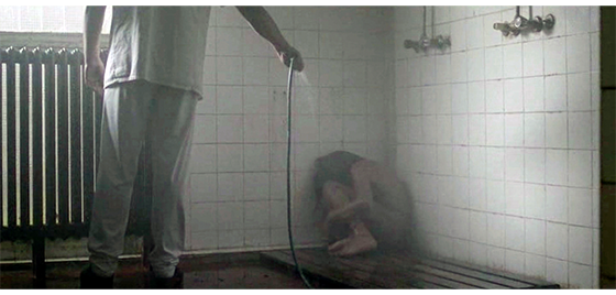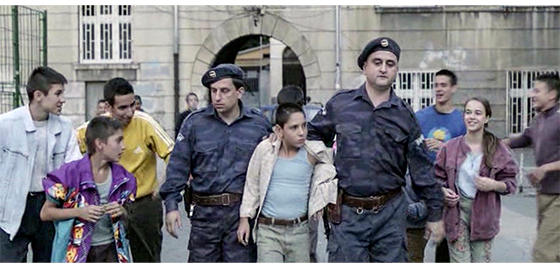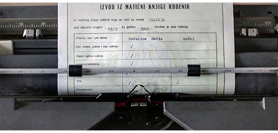 その後、少年は共用シャワー室に連れて行かれ、全身の泥を洗い流す(1枚目の写真)。そして、伸び放題の頭髪を、ハサミで切り落とした後、電気バリカンで長目の丸刈りにされる(2枚目の写真)。眠ったままの少年は、冬らしい服を着せられ、事務室に運んで行かれる〔声だけが聞こえ、誰が話しているかは分からない〕。「で、これから、この子どうする?」。「ベオグラードに送ろう」。タイプライターに挟まれた紙の一番上には「ユーゴスラビア社会主義連邦共和国/ボスニア・ヘルツェゴビナ社会主義共和国」と印刷され、その下の大きな字は、「出生証明書」。タイプで打たれた文字は、作成場所が「トラヴニク」、作成日が「1988年1月23日」。姓名は適当に「Pućurica Haris(プチュリツァ,ハリス)」〔Pućurica は農耕に携わる人に多い姓、Harisはボスニア人の一般的な名〕、性別は「男性」。しかし、その下の、「生年月日、出生地、両親、家族名」の欄には「/」が記され、最後の「国籍」だけ「ユーゴスラビア」とタイプされ、書類は完成する(3枚目の写真)。そして、映画のタイトルが表示される。