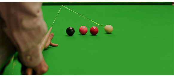 日本のビリヤードの原点は、1871(明治4)年、東京にオープンしたアメリカ式の「キャロム・ビリヤード」の店で、白球2つと赤球1つ(または2つ)を用いるゲームだった。しかし、この映画に登場するのは、日本ではあまり馴染みのない、スヌーカーというゲーム。1875年に、インド駐留英軍のチェンバレン大尉が考案したもので、1885年にイギリス国内、その後、英連邦の諸国に広まっていった。ゲームの最初にテーブルの上に置かれる球の場所と数を、下の図に示す。