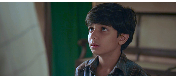 2人が、2階にあるクラブの部屋に入って行くと、白のブレザー姿のゴティを見て、ミディやゴティに 「よう、坊や。どうした?」。「おい。何とか言えよ」と声がかかる。奥のイスにミディを座らせたゴティは、そこら辺にいる男に、「会費は幾らですか?」と訊く。「会費は500ルピー〔1600円〕だよ。他に、1時間あたり10ルピー〔30円〕を払うんだ」。それを聞いたゴティは、相手が親切なので、今度は相手の肩に腕を回し、「賭けは何です?」と、一番知りたいことを訊く。「勝者には、卵1個とパン2枚」。それを聞いたゴティは、話にならないと思い、ミディに 「ここを出よう」と言うが、ミディは 「僕、ここでプレーしたい」と頼む。それでも、強引に両腕を掴んで引っ張っていかれるので、「ダメ、ゴティ。お願い!」と何度も頼む。外の、ベランダ廊下に出たゴティは、「お前、正気か? あそこの連中見たか? めちゃ危険なクソじゃないか。それに、一人でここまで来られると思うか?」と反対する。「僕、来られるよ」(2枚目の写真)。「母さんに見つかったらどうする?」。「見つからない」。「マズイことが起きたらどうする?」。「兄さん、マネージャーだろ。何とかしてよ」。次のシーンは、恐らく翌日。学校からミディが出てくると、スクーターに乗ったゴティが待っている〔ミディが初めて見るスクーターなので、ゴティが新しく買ったことになるが、前にも書いたが、そんなお金どこで手に入れたのだろう?〕。ゴティはミディを後ろに座らせると、「ズボンの右ポケットに手を入れて」と言い、1枚の紙を取り出させる。それは、YMCウェリントン・クラブの会員であることを示す紙だった(3枚目の写真、矢印)。喜んだミディが、「今日からプレーしてもいいの?」と訊くと。「そうだ。今度は、左ポケットに手を入れて」。それはお金だった。「それが、今日の使用料と交通費だ」。ミディは、「兄さん、もう一つお願いがあるんだ。僕、クラブの管理人のレマトに、父さんの壊れたキューを直してって頼んじゃった。レマトに100ルピー〔300円〕払わないと」と打ち明ける。ゴティは、ミディを連れてクラブまで行くと、レマトに向かって、「あんた、その子を騙せると思うのか? こんなことに100ルピーもかかるかよ、とんま」と暴言を吐くと、ポケットから少額紙幣を取り出して投げつけ、修理の終わったキューを取り上げて部屋から出て行く。レマトは、一人残ったミディに、「君の兄は、何て厚かましい奴だ。上部に苦情を申し立てるからな!」と怒鳴る。