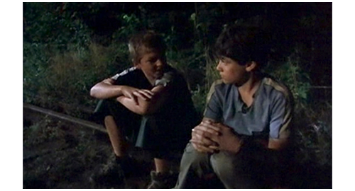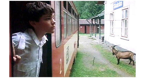しかし、リボルの進行方向の数m先に、突然フィリップが現われる。リボルは逃げようし、それを止めようとするフィリップとで 取っ組み合いの争いとなる。フィリップ:「見つからないよう、こっそり逃げようとしたな!」。リボル:「行かせてよ」。「自分が誰だか分かってんのか、このバカ、変人?!」。「君に手紙書いたよ」。「そんなもん知るか!」。「大声出さないで。ベルト 置いてったんだから」。「知るか!」。2人とも争いを止めると、立ち上がって 怒鳴り合う。リボル:「分からないの?! 僕、グスタじゃない!」。フィリップ:「何だと?! 知らないとでも思ったのか?!」。「どういうこと?」。「君は孤児院の子みたいじゃないし、話し方だって違う!」(1枚目の写真)「どこから来たんだ?!」。「違いがあるの?」。「そうだ。君が僕の弟だったら知りたい! だが、そうじゃないんなら、どうだっていい!」。それだけ言うと、フィリップはリボルを放って、家に戻ろうとする。リボル:「フィリップ、待って。大事なことを話したいんだ」。ここから、リボルの短いナレーションに変わる。2人はレールの上に並んで座っている。「どれくらい そこに座っていたかは分からない。多分、1時間か2時間。僕は、フィリップに全部話した。最初のうちは うまく話せなかったが、話すにつれて安堵感が増していった」。フィリップ:「君、これからどこ行くんだ? 伯母さんと伯父さんのトコか? (そんなことしたら)施設に放り込まれるぞ! 明日、君の姿が消えてたら、ブランカとエリックがどう思うと思う? それに、イトカとマルセラに何て話せばいいんだ?」(2枚目の写真)。リブレ:「僕、手紙に「ごめんなさい』と書いたよ」。「君、悪いなんて ぜんぜん思ってない! そう思ってたら、どこにも行けないハズだ! もしホントに後悔してるんなら、君は話すだろう… 自分が誰だってこと、そして、僕たちを騙してたってことを! 君は、自分の兄に、『彼のことなんてどうでもいいと思っている』と思われたいのか?!」。「まさか、そんな」。「口だけだろう」。ここでフィリップは立ち上がって、家の方に歩き始める。リボルは後を付いていきながら、「本気だよ、フィリップ」と言う。フィリップは、振り向いて、「なら、証明してみせろ!」と言う。「どうやって?」。フィリップは、リブレの所まで戻ると、以前やったように、レールの上を歩いて、どちらが早く家に戻るか競争しようと持ちかける。2人はレールの上を歩き始める(3枚目の写真)。ここから、映画の冒頭にあったナレーションの続きとも言える、最後の長いナレーションが、映画の終わりまで続く。「僕は勝ち、翌日、みんなにすべてを打ち明けた。それは、ホントに大変だったけど、何とかやり遂げた。ブランカとエリックは僕を信じてくれた。僕がブレスレットを盗んでないことも、あの2人のバカが僕を誘拐したことも。警察は、僕がクソの中を歩いて逃げた、あの見捨てられた小屋を見つけて欲しがったが、僕にはできなかった。この夏、たくさんの変化があった。僕は、話し方や態度を変え始めた。でも、変わらないものもある。エリックとブランカは、僕を もう『グスタ』とは呼ばないけど、僕への愛情は変わらない。僕の伯母と伯父は、僕がパネンコ家で暮らすことに、すぐさま、喜んで同意した。きっとホッとしたんだろう。もう僕を育てる必要もないし、自分たちの(儲け)仕事の邪魔にならないから〔愛情のかけらもない悪人ども。そもそも、自分達の愚かな誤解や、浴びせた罵声を詫びるくらいはしたのだろうか?〕。あ、そうそう、猫のザラが逃げちゃった。たぶん、(誰にも構ってもらえなくて)寂しかったんだろう。今思うと、ひょっとしたら、ザラがあのブレスレットを盗んだのかもしれない。ザラは犬でもないのに、いつも何かをテラスに埋めてたから。他にも(語るべきことは)たくさんあるけれど、僕が、一つだけ固く信じていることを言っておこう。あの夜、レールの上で、フィリップと競争していた時、僕の誘拐は終わったんだ。誘拐されて 家に〔映画の題名〕戻れた!」。