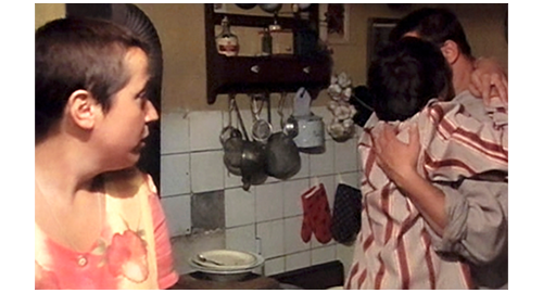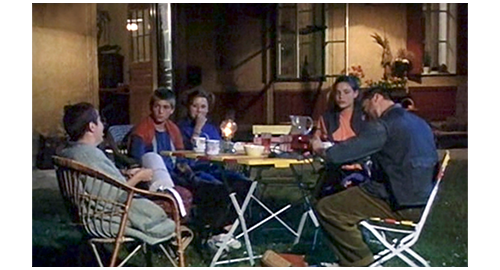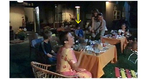 その日の夜、家の前のテーブルで食事を終えたブランカとエリックはご機嫌で、他の子たちも笑顔が絶えないが、リボルだけがしょんぼりと座っている(1・2枚目の写真、矢印)。ブランカとエリックが夕食の片付けにキッチンに入って行くと、その前を、子供たちが、一人ずつ 「お休みなさい」と言って2階に上がって行く。最後に残ったリボルは、キッチンの前に立って、じっと2人を眺める(3枚目の写真)。