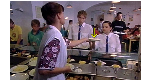 映画の冒頭、主人公リボルのナレーションが入る。「今日、僕は気付いた。これは偶然じゃなかったんだと。避けられないことだったんだ。互いに惹かれ合う人がいたから… たとえ遠く離れていても。それに、突然襲いかかった惨事も。あの6月の朝、休みが始まる2週間前、僕はまだ何も気付いちゃいなかった。すべてがいつも通り。何の予兆もなかった… まもなくすべてが根本的に変わってしまい、二度と元通りにならなくなるなんて」。そして、リボルが所属するプラハの名門私立寄宿学校の様子が映される。最初は歴史の授業、次が木工作業の見学。筋肉隆々の体育の講師が、「人生じゃ、いつ、何が役に立つか分からん」と言うと、リボルと友人の前で電動ドライバーの使い方を実演する(1枚目の写真、矢印)。3番目が学食での皿盛りシーンで、リボルが 「マッシュポテトだけでいいです」と言うと、配膳係の女性が 「どうして?」と訊く。リボルが 「カリフラワーが苦手だから」と言うと、名門校の割には口の悪い女性が 「あんたが、もし私の子だったら、目の前に座らせて全部食べさせてやる」と言いつつ、マッシュポテトだけの皿を渡す(2枚目の写真、矢印)。リボルは 「そんなことしたら、おばさんの目の前で吐いちゃうよ」と言って立ち去る。4番目は、夜になり、誰もいないサロンで、リボルがピアノを弾いている(3枚目の写真、矢印)。5番目は、日中、リボルと友人が、教員用のシャワー室の木の床に、電動ドライバーでサンダルをネジで固定し、それを履こうとしたさっきの講師が床にうつ伏せに転倒する。