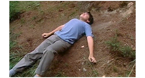 そして、大問題は、パーティと同じ日に起きる。パーティに参加していたリボルより小さな少年が、子供達だけが残った場で、「ねえ、君たちもう聞いた?」と言い出す。「何を?」。「高速道路の下の池から男の子(の死体)が引き上げられたんだ」。イトカ:「どんな子?」。「溺死してた」(1枚目の写真)。イトカ:「誰なの? 知ってる子?」(2枚目の写真)〔リボルは、グスタだと確信した〕。「ひどい姿だったから… ぜんぜん…」。ここで、フィリップが割って入る。「パヴェル、くだらない話はやめろ。誕生日にする話じゃない!」。しかし、姉のイトカは、やめない。「警察、そこにいたの?」。「もちろん。医者や葬儀屋も」。ここで、リボルが、「それでも、まだ誰だか分からないの?」と訊く。「どれくらい長いこと池の中に沈んでたのか、誰にも分からない。警官は、その子、多分、逃げ出したんだろうって言ってた」。そこに、マルセラがやって来て、コクマルガラスが逃げ出した鳥籠を見せる。イトカが、「針金を巻いておくべきだったわね」と言う。マルセラが、「この鳥籠、あんたが作ったの?」とフィリップに尋ねると、「僕じゃない、グスタだよ。彼、捕らわれの身になったように思わせたくなかったんだ」。そう言って、横を向くと、それまで隣にいたリボルがいない。その頃、リボルは森の中を走って行き、地面に横になると、悲しさのあまり地面を殴ったり、上を向いて涙にくれたりしていた(3枚目の写真)。そこに、パンが寄ってきたので、抱きしめる。リボルはパンに話しかける。「パン、決心したぞ。彼は、入水自殺すると言って、溺死した。僕は、彼の名前を盗んだ」(4枚目の写真)「これで、隠された真実が明らかになる。明日か明後日には、警察が僕を逮捕しに来る。もちろん、ブジョルティから “魔女” も一緒に来て、『これはグスタじゃない』とバラす。『君、名前は? 誰なんだ? なぜ嘘を付いた? 何をしてきた?』。僕は、警察に すべてを詳しく話すだろう。そして、矯正施設にぶち込まれるんだ。僕は、そんなことされないぞ、パン」。