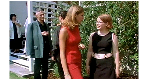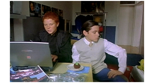 翌、土曜の朝。前夜、パジャマにも着替えず、ザラを抱いたまま寝てしまったリボルが、遅刻してサーブまで走って来る。車内には、土曜なのに重要な打ち合わせがある伯父と、劇場まで行く伯母が、イライラして待っている。伯母は、ザラのことを野獣、厄介物と呼び、買ったばかりのマンションがメチャメチャだと文句を言う。次に、リボルのだらしない服装を批判し、「なぜ、私たちが あんな高い学校にお金を払ってると思うの?! 教育のためだけじゃなく、あなたに ちゃんとした行動規範を身につけてもらうためなのよ!」と叱る。「それって、どういうこと?」。「『どういう』?」。「あの… 『行動規範』って?」。「それはね、あなたの話し方、振る舞い方よ。あなたが、他の人とどのようにコミュニケーションを取り、特定の状況にどれだけ適応できるかということ」(1枚目の写真)「例えば、昨日、あなたが ダニの話を出したのは明らかに不適切だったの」。「だって、ダニがあんなに血を吸ってるのを見たでしょ? ザラすごく苦しんでたよ! それに、あの人たち、僕に挨拶すらしなかった。つまり、あの2人には行動規範が全くないってことだね」。「あなたはね、私たちの重要なビジネスを妨げたのよ。伯父さんは激怒してたわ」。怒ることしか知らない伯母は、「ミハル」と何度も伯父に呼びかけ、リボルを叱ってもらおうとするが、伯父の頭にあるのは今日の仕事〔昨日のような一軒の家ではなく、地下駐車場に関連した大きなプロジェクト〕のことだけで、「遅れないよう、地下鉄で行く」と言って途中で降りてしまう。「リボルの誕生日会、忘れないでね?」。「そうか? 何時だ?」。「午後5時よ。イットガート夫妻を招待したわ」〔誕生日会とは名ばかりで、商談の会の付け足し〕。その後、伯母が下り、リボルは運転手のマデラと一緒に、チャックの壊れたズボンの代替品を買いに行く。そして、午後5時になり、リボルの誕生日会が始まるが、参加者は ほとんどがリボルの知らない大人の男性ばかり。2人だけ来たリボルの知らない女の子のうちの1人〔黒い服〕は、「あの女(ひと)、彼のお母さんじゃないのよ」と、もう1人〔赤い服〕に話す(2枚目の写真)。「彼のお母さんじゃないなら、誰なの?」。「伯母さん。彼の両親はバイク事故で亡くなったの」。「ホントなの? いつ?」。「ずっと昔」。1人寂しく階段に座っていたリボルの所に、1人の男の子が、母親が買ったプレゼントを持ってやって来る。しかし、リボルが包みを開けると、男の子は中に入っていたコンピュータ・ゲームに夢中になり、リボルのコンピュータを占領して遊び続け、リボルに触らせようともしなかったので、リボルはしびれを切らして立ち去る(3枚目の写真)。そして、自分の部屋に行くと、すべてがバカらしくなり、仰向けになってベッドに倒れ込む(4枚目の写真、矢印)。
