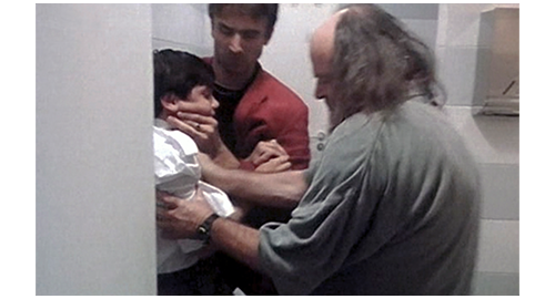 トイレが終わったリボルは、2人の男に乱暴に掴まれ(1枚目の写真)、顔に拳銃を突き付けられ、「ちょっとでも声出してみやがれ」と脅される。誘拐犯の老人の方は、リボルのズボンのポケットから、さっき伯父が渡した1000コルナ札〔2001年7月の為替相場で3200円〕を奪い、そのまま、リボルの口を押えてトイレから出ると、すぐ横に付けたバンの後部に放り込む(2枚目の写真)。マデラは、リボルが戻って来ないので、トイレも含めてあちこち探すがどこにもいない。そこで、携帯で伯母に連絡する。一方、プラハから相当離れた田舎まで来たバンの運転席では、若者の誘拐犯が、「黙ってろ、警官には一言も言うな、金を用意しろ」と、“両親” に要求する内容を口に出している。老人の方は、「奴らを怖がらせるほど、ガキのためにたくさん払うぞ」と言う。それを聞いたリボルは、「誰が、僕なんかのために払ってくれるの?」と尋ねる。若者:「『誰が』だと? お前の親父に決まっとるだろ? 100万、200万、それとも、300万〔960万円〕か?」。「だけど… 僕の父さん、死んじゃった。母さんもだよ」。それを聞いてびっくりした若者は、リボルの上半身を運転席に引っ張り込み、「何だと?!」と怒鳴る(3枚目の写真)。「父さんと母さんはもう亡くなった。僕の伯母さんと伯父さんが、僕を育ててる」。老人:「誰が育ててようが構わん。あのマンションや、車や、財産は誰のだ?」。「みんな、伯父さんと伯母さんのだよ」。それを聞いた若者は、リボルを車の後ろに突き放す。2人は、車から出て10mほど先まで行き、これからどうするか話し合う。リボルは、その隙に逃げようと、運転席まで何とか出て来るが、バランスを崩してハンドルにぶつかり、クラクションを鳴らしてしまう。2人が走って戻って来たので、リボルは後ろに戻るが、逃げようとしたことで乱暴に殴られる。