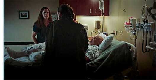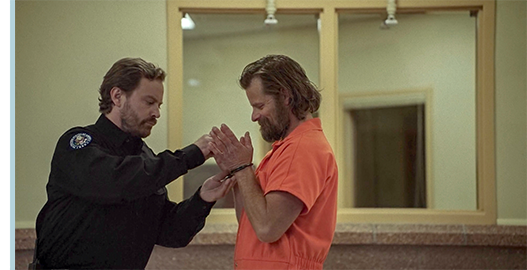 そして、刑務所の家族面会室。トロイが連れて来られて手錠を外される(1枚目の写真)。腹部を撃たれたトロイが完全に回復しているので、前節で「数ヶ月」と表現した。その様子を、ジョーが嬉しそうに見ている。そして、3人はテーブルを囲んで座る。トロイ:「俺のトラックは? 運転してるのか?」。ジョー:「恐ろしいよ」。「恐ろしい? 砂利道にはぴったりだろ?」(2枚目の写真)。「彼、運転免許 取ったのよ」〔モンタナ州の免許取得年齢は14歳/ジョーは11歳のハズだが?〕。「そうなのか? 凄いじゃないか」。そして、「そのシャツ、好きだぞ」。「ありがと」。「学校は楽しいか?」。「さあ」。サリーが 「家で後れを取り戻すのが大変」と説明する。トロイは、カレッジから、刑務所内の教室に教えにくる人がいて、勉強していると話す。ジョーは、ニコニコしながら、「何を学んでるの?」と訊く(3枚目の写真)。「ただの基礎だ。ただ、これは手始めで、ここを出た後も続ける」。「模範囚なの?」。「ああ、ウルトラ模範囚だ。お前さんは?」。「まあね」。ここで、面会時間は終了。立ち上がったトロイに、ジョーが抱き着く。「バァイ」。「またな」。トロイは再び手錠をはめられ、連れ去られる。ジョーが、じっと見送る〔それにしても、なぜ刑務所に? 何も悪いことはしていないと思うが? “誘拐” は、サリーが誤解だったと言えば済むのでは?〕。