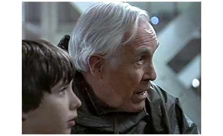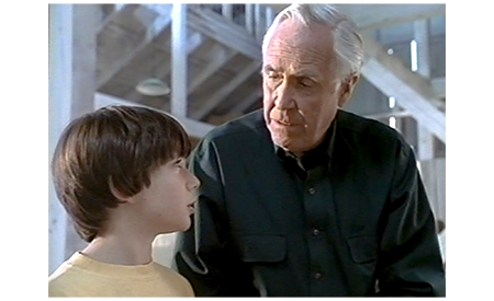 この写真を見て、ジャーニーは、「これ、僕が覚えてる顔じゃない」と言う。そして、「僕が乗ってたのは、お祖父ちゃんの膝だったんだ。子守唄を歌ってくれたのは、お祖父ちゃんだ。パパじゃない。僕の 記憶にあったのは、お祖父ちゃんのYシャツ とボタンだったんだ」と感動する(1枚目の写真)「お祖父ちゃんの顔だったんだ。僕の世話をしてくれたのも、パパじゃない。お祖父ちゃんだった」。最後の独白。「こうして、お祖父ちゃんは作業場を後にした」(2枚目の写真)「僕は、木の壁に沿って指を這わせていった。そして、干し草に手を触れた。触れれば、それが自分の物になるかのように」。納屋の扉まで行くと、ジャーニーが祖父に一言、話しかける。「2人とも、一度は 僕を愛してくれたんだ〔Once they loved me〕」。「そして、僕たちは扉を開け…」(3枚目の写真)「納屋の外へと、足を踏み出した。夜は終わり、日が昇ろうとしていた」。